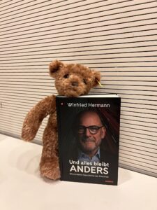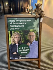 Winfried (Winne) Hermann, Verkehrsexperte und seit 14 Jahren grüner Verkehrsminister von Baden-Württemberg, hat am 5. November im Margarete-Steiff-Museum in Giengen aus seinem Buch „Und alles bleibt anders – Meine kleine Geschichte der Mobilität“ gelesen. Anhand seiner eigenen Geschichte präsentierte er die des Verkehrs seit dem Ende des 2. Weltkriegs ebenso lehrreich wie unterhaltend. Unsere Landtagsabgeordnete Clara Resch moderierte den Abend gekonnt professionell.