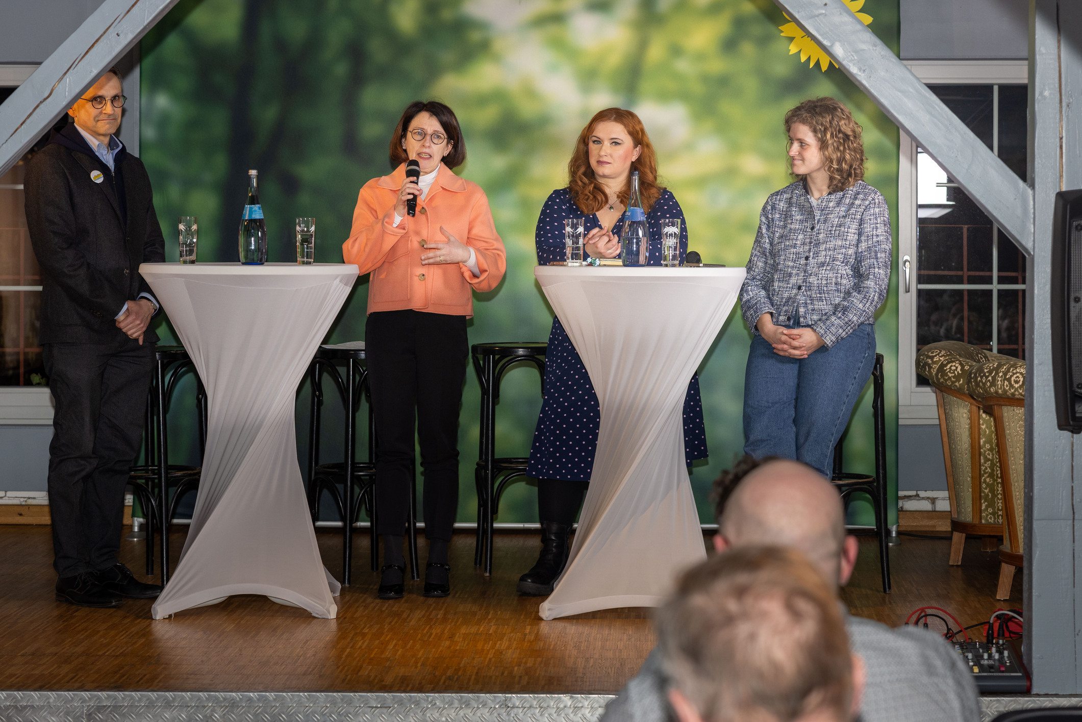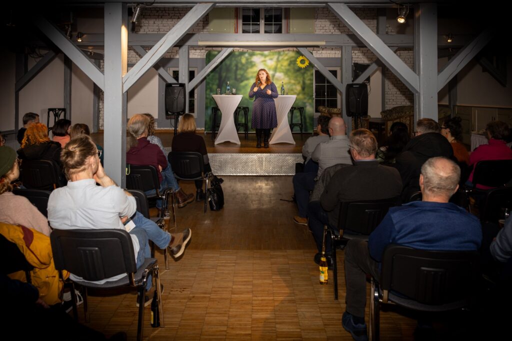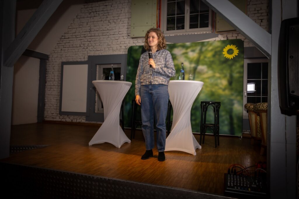 In der Fragerunde, die von Clara Resch moderiert wurde, spannten die Gäste den Bogen von der Wehrpflicht über Sicherheitsgarantien bis zur atomaren Aufrüstung. Die Antworten von Agnieszka Brugger darauf waren eindeutig: Nein, zu einer atomaren Bewaffnung von Deutschland! Ja, zur Wehrpflicht unter Beibehaltung des Rechts auf Wehrdienstverweigerung! Außerdem sei es notwendig, die Ukraine weiter militärisch und finanziell zu unterstützen und den Menschen dort die Perspektive für einen EU-Beitritt zu geben. Deutschland selbst müsse resilienter und unabhängiger von Energieimporten werden!