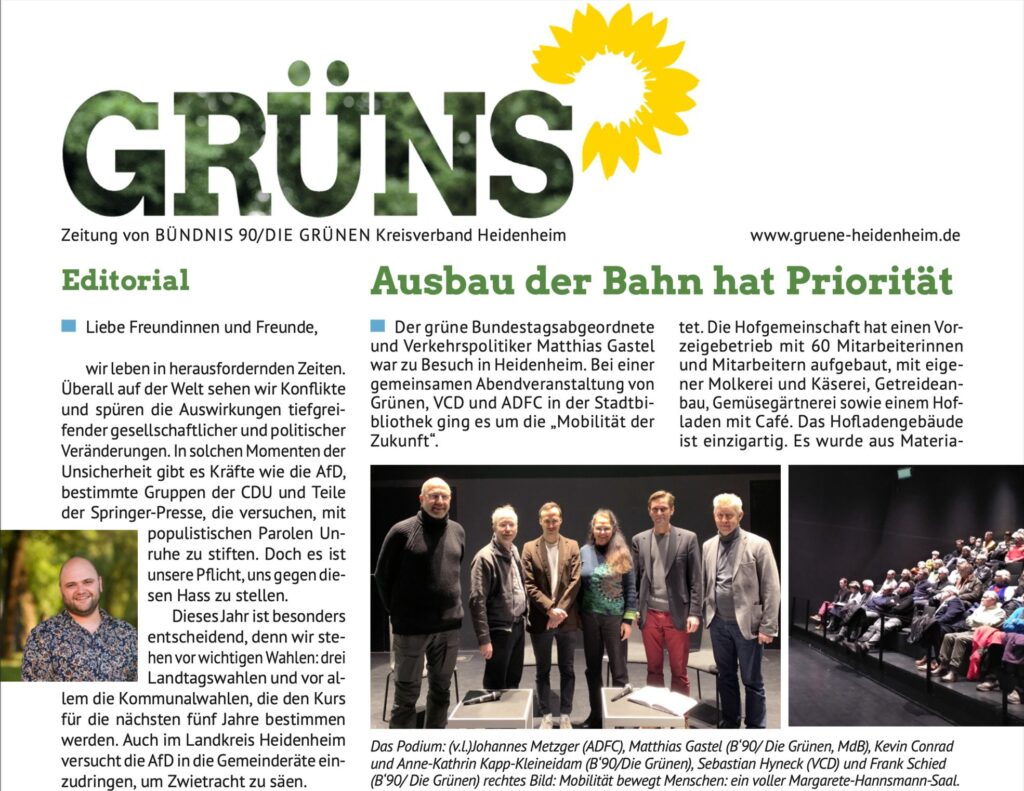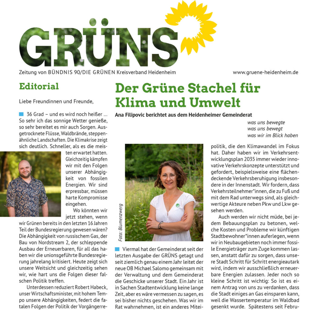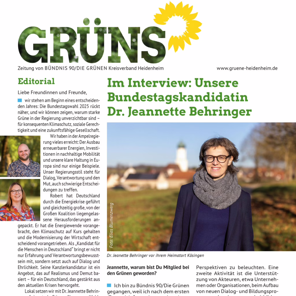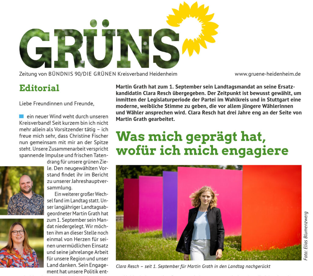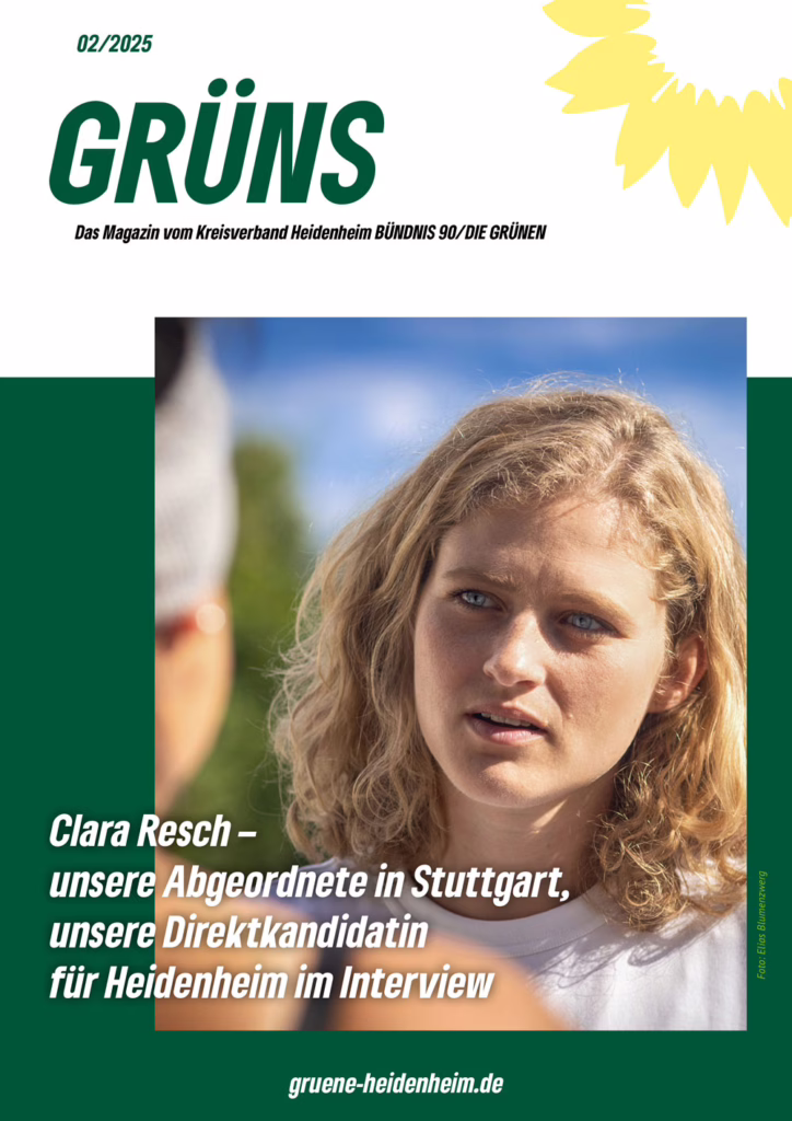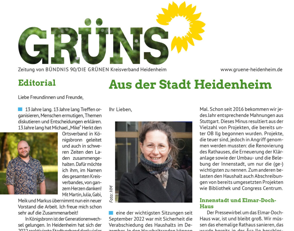 Die GRÜNS ist die Mitgliederzeitung des Kreisverbandes von BÜNDNIS 90/DIE GRÜNEN in Heidenheim. Auch interessierte Bürgerinnen und Bürger können sich die GRÜNS zusenden lassen.