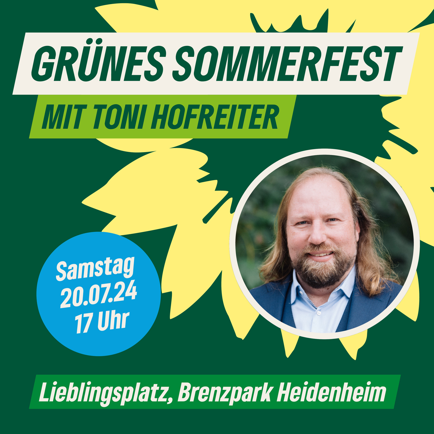Dr. Anton Hofreiter ist seit 2005 Mitglied des Deutschen Bundestages. Von 2013 bis 2021 war er neben Katrin Göring-Eckardt Vorsitzender der grünen Bundestagsfraktion. Seit 2021 ist er Vorsitzender des Ausschusses für die Angelegenheiten der Europäischen Union. Für die musikalische Unterhaltung beim Sommerfest sorgt das Heidenheimer Duo YOU’n’ME (Andreas Antoniuk & Ricarda Rickert). Das Fest findet im Cafe & Bistro Lieblingsplatz im Brenzpark statt.